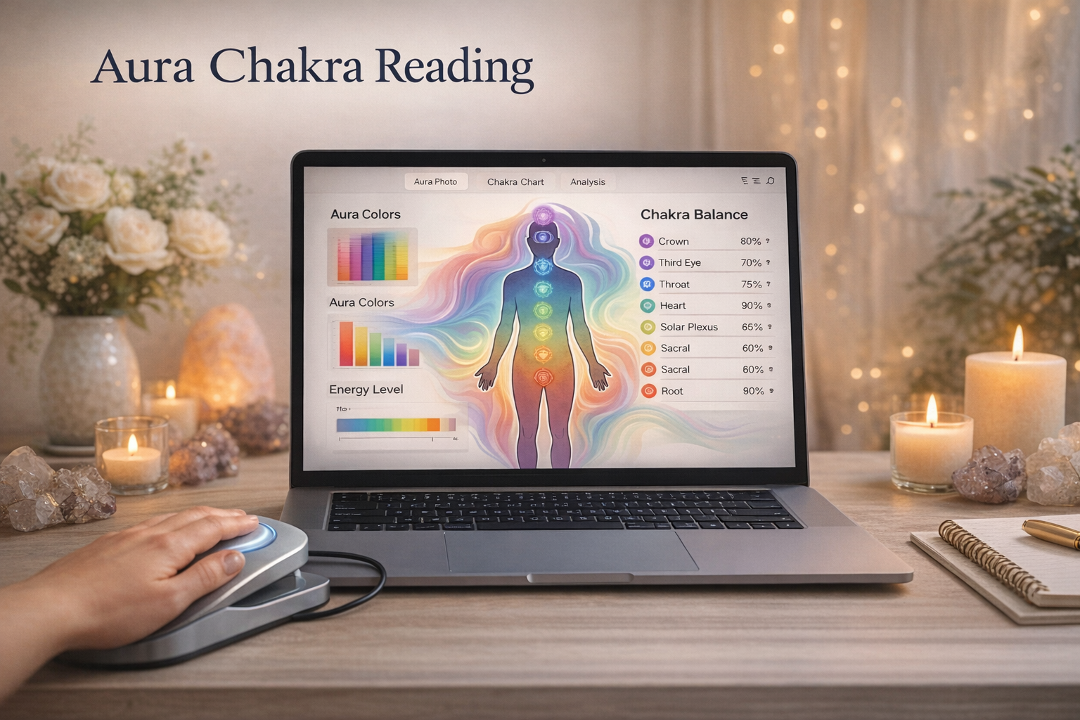 Welcome to Aura Chakra Reading, we believe that you are more than just a physical body—you are a vibrant being of energy. Our mission is to bridge the gap between the physical and spiritual worlds using cutting-edge biofeedback technology. We provide a window into your soul, translating your electromagnetic field into a visual spectrum that reveals your emotional state, personality traits, and energetic potential.Whether you are seeking clarity, healing, or simply curiosity about your spiritual colors, we are here to guide you through the fascinating landscape of your own aura.